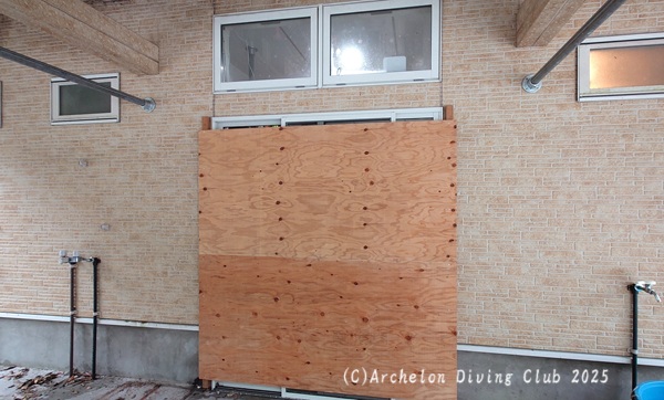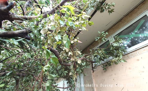 枝の先端が小窓に触れており、これが中から見えるので、暴風中は「これがもっと傾いて枝が突っ込んできたら割れるのではないかと…