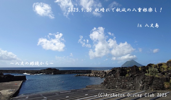 2025/9/30☀時々☁のち☔ 八重根 水温27.0℃ 透視度15-18m 気温21.8-29.4℃ 風:東北東(Max11.3m/s)