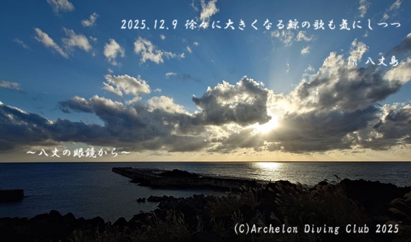 2025/12/9☀たり☁☔ 八重根 水温22.1℃ 透視度15-20m 気温11.4-16.8℃ 風:西~北北東(Max13.4m/s)