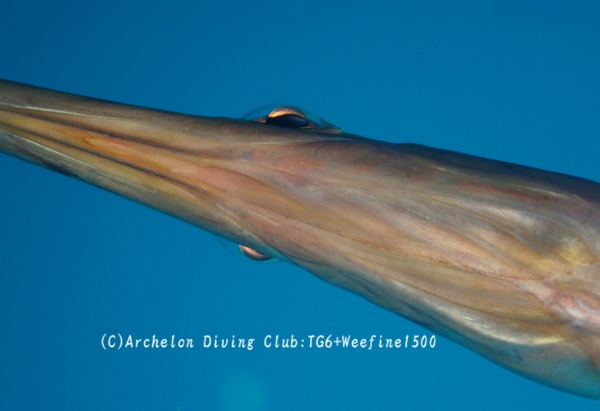そんな水底にへばりついていると、顔のすぐ横にヘラヤガラ。
