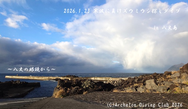 2026/1/23☁☀⛄ 八重根三昧 水温17.5℃ 透視度10-15m 気温3.9-7.9℃ 風:西北西~西(Max14.9m/s)