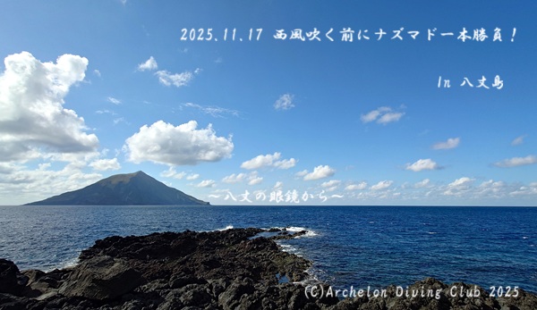 2025/11/26☀ 底土・神湊 水温23-23.5℃ 透視度8-12m 気温15.0-18.2℃ 風:西北西(Max14.9m/s)