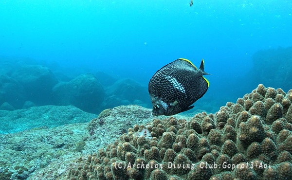 魚類:サザナミヤッコ タテジマキンチャクダイ 底土にもノコギリダイ ニセフウライチョウペア