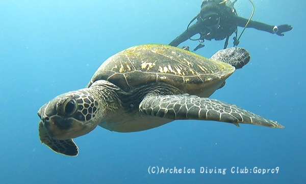 アオウミガメも活性高く、あちらこちらで摂餌中。