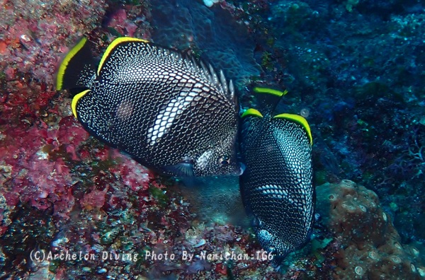 魚類:ヒレナガヤッコのハーレム ウメイロの若い個体 オビテンスモドキ ミヤケテグリ ハタタテハゼ ヘラルドコガネヤッコちびちゃん