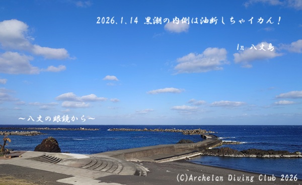 2026/1/14☀ 底土 水温17.8℃ 透視度15m 気温8.7-11.9℃ 風:西~西北西(Max18.5m/s)