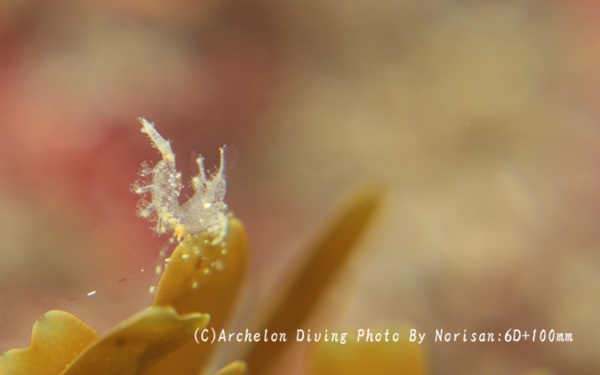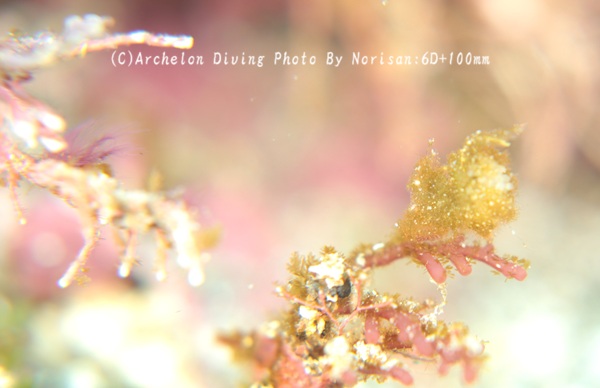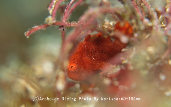 イロカエルアンコウ、お気に入りの海藻に包まって