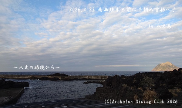 2026/2/23☁のち☀ 八重根 水温17.4℃ 透視度15-18m 気温15.2-19.2℃ 風:南西(Max14.4m/s)