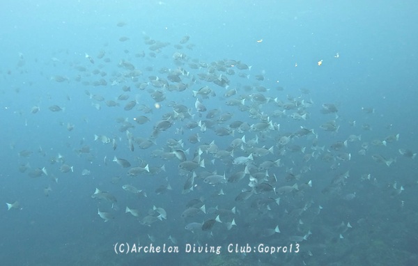 安全停止のエリアでメジナ大群。