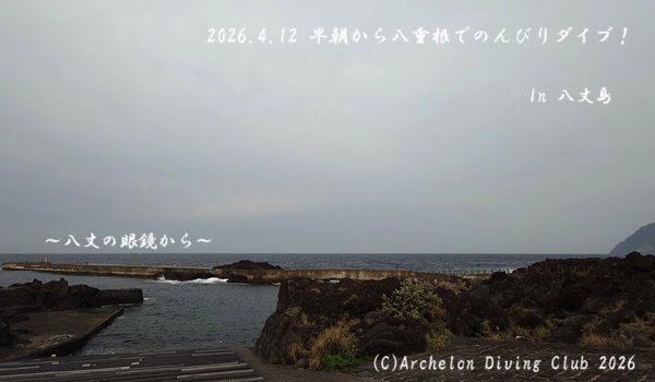 2026/4/12☁のち☀ 早八重・八重根 水温20.5℃ 透視度15m 気温13.8-22.3℃ 風:西→北西→北北東(Max14.4m/s)